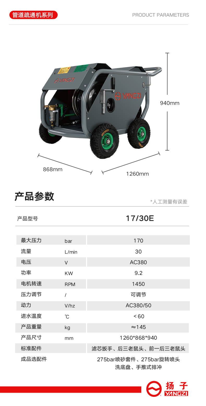 揚子管道疏通機YZ25-45G/YZ25-45GB汽油款 小區物業下水管道清洗機大功率市政污水管道疏通清洗