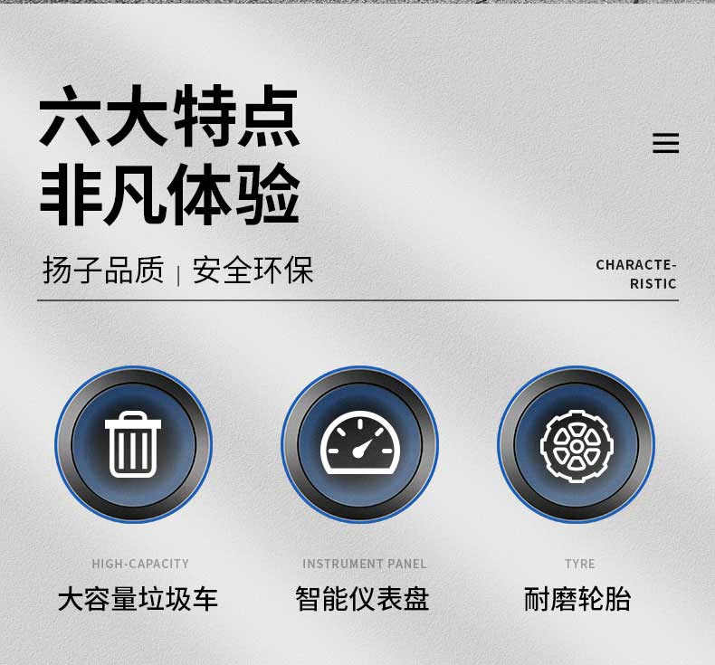 大容量垃圾車,智能儀表盤,耐磨輪胎,組合前燈,全車電泳烤漆